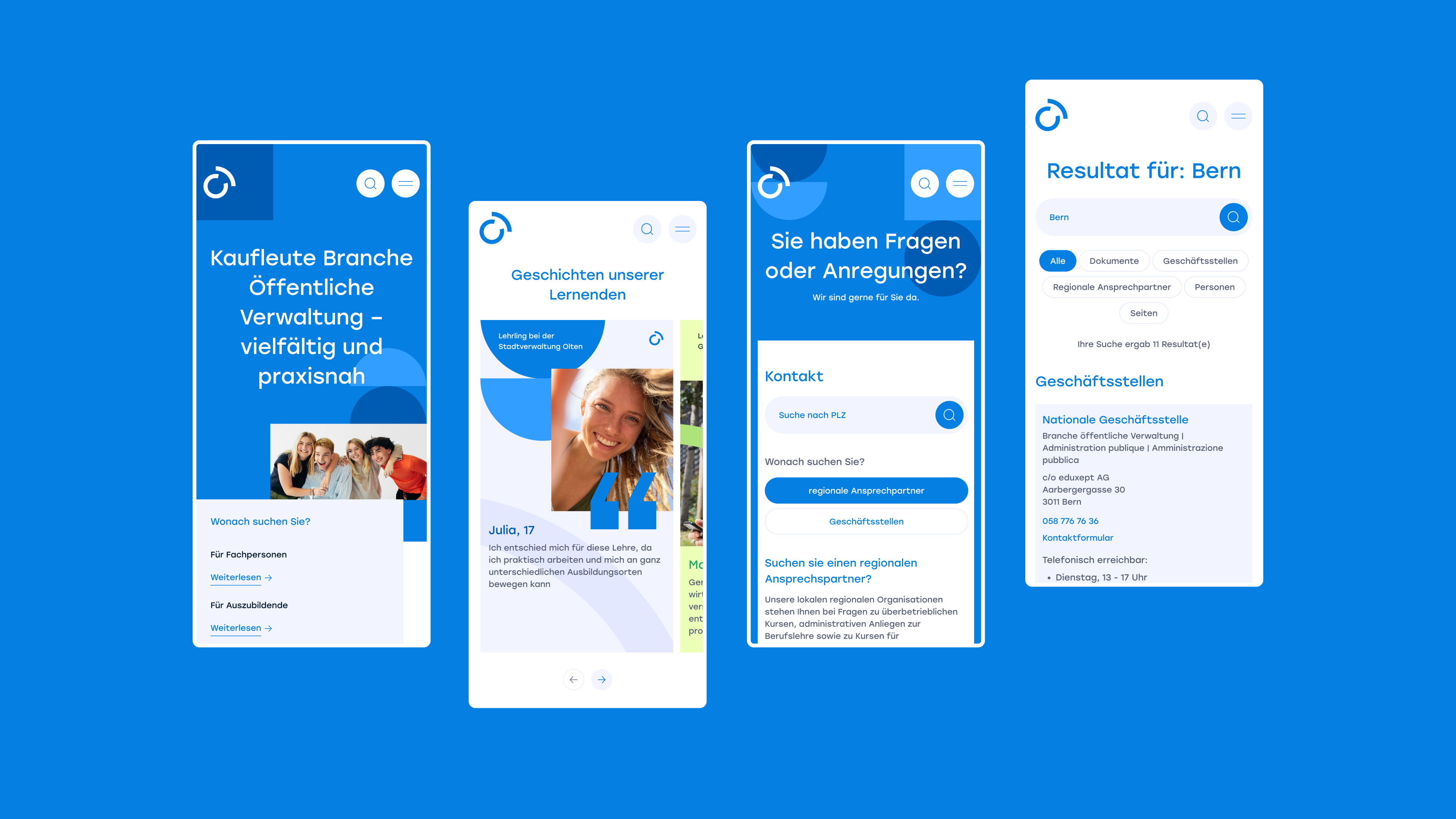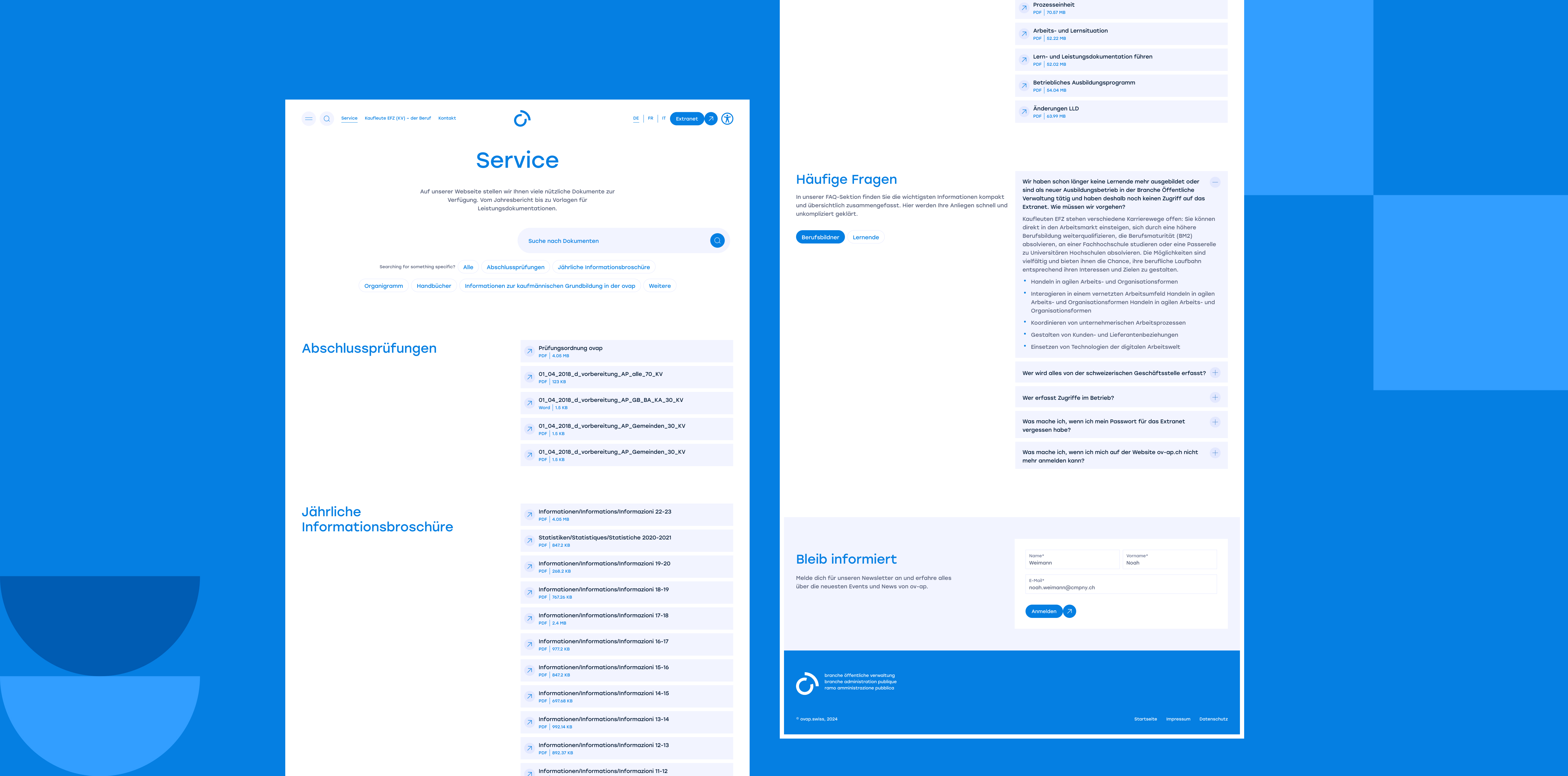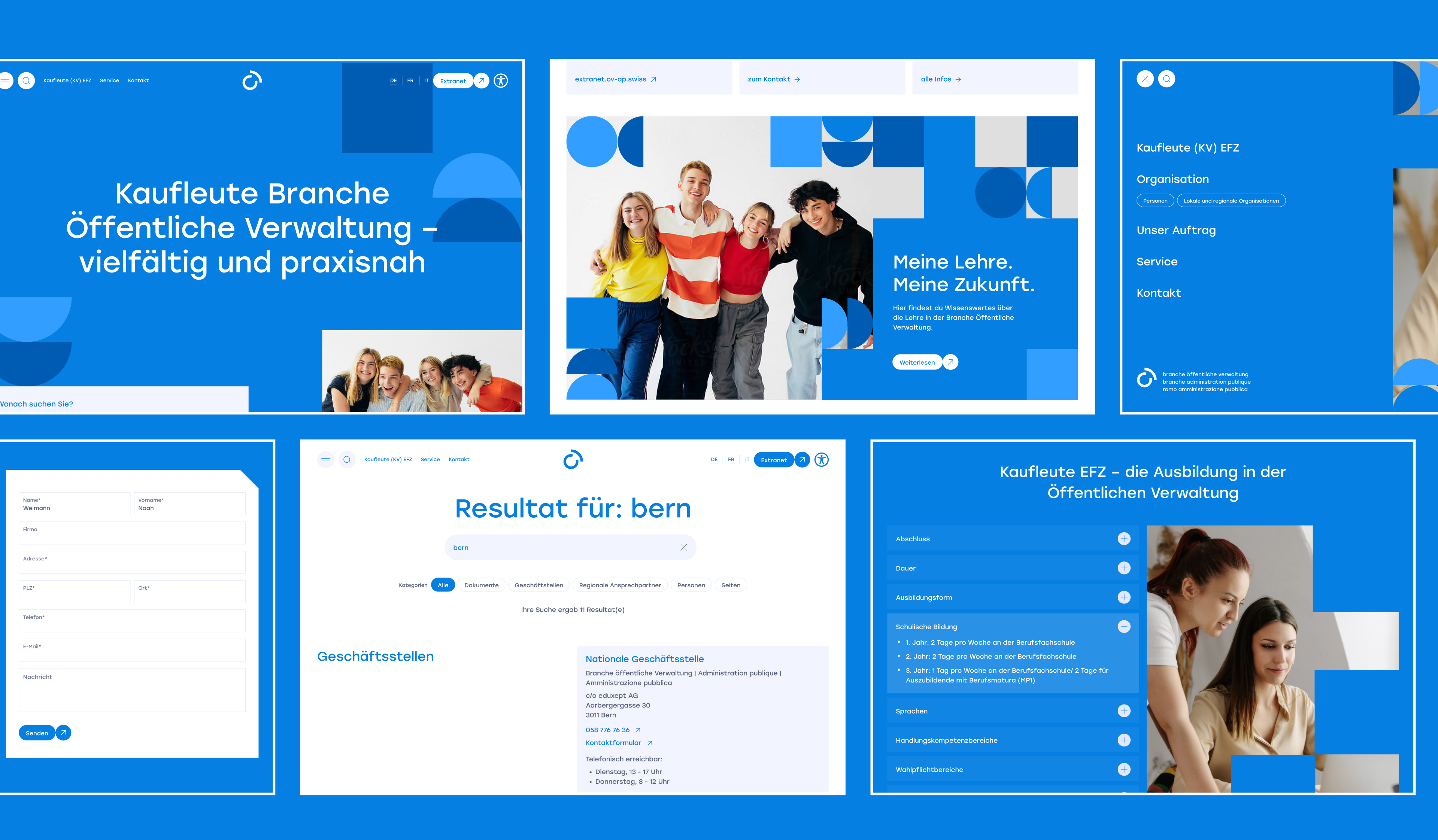 ov-ap.swiss (Branche Öffentliche Verwaltung) is where future public administration professionals start their journey. My task was to redesign the website and build the brand identity, turning an administrative portal into a clear, modern, and inviting platform for young people discovering their career path.